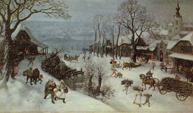 Aber ich möchte das Thema Wintermärchen hier thematisieren. Es sollen also - möglichst ohne Kenntnis der Ausstellung - hier Winterbilder gepostet und kommentiert werden, wobei ich den Kommentar - er muß nicht lang sein- als besonders wichtig erachte. Freie Assoziation sozusagen. "Wintermärchen" auch wenn es so klingt - muß nicht in allen Fällen ein Idyll darstellen (Man denke an Hans Christian Andersens "Das Mädchen mit den Schwefelhölzern) Winter kann auch Kälte, Hunger und Tod bedeuten, Kampf mit den Elementen etc etc.