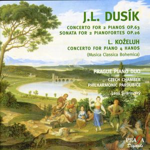 Mir fallen z.B. Mozart (Flöte & Harfe), Bach (4 Klaviere) und Milhaud (Marimba & Vibraphon) ein.