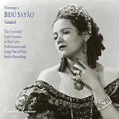 Bidu Sayao wurde 1902 als Balduina de Oliveira Sayao in Rio de Janeiro geboren und debütierte mit 20 Jahren in ihrer Geburtsstadt. Ihre Ausbildung verdankte insbesondere Elena Teodorini und Jean de Reszke. In den dreißiger Jahren wurde sie in Europa berühmt und stieg auch zu einem MET-Star auf, der besonders durch Toscanini gefördert wurde. 1957 beendete sie ihre Karriere und lebte seither in Maine, wo sie in Rockport 1999 verstarb. Ihre Asche wurde vor ihrem Wohnsitz in Lincolnville ins Meer gestreut.